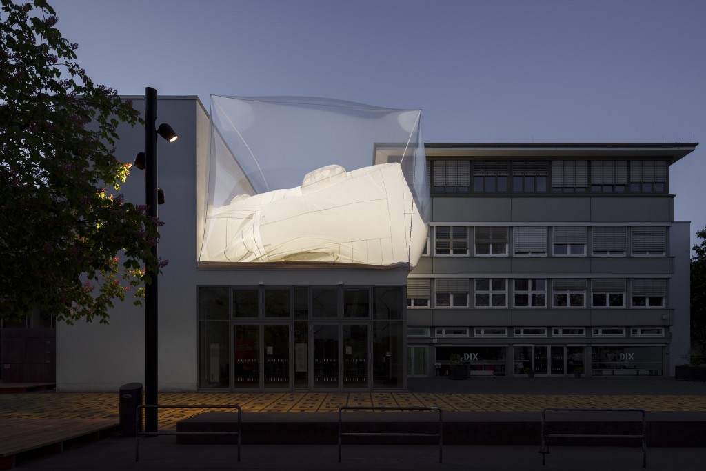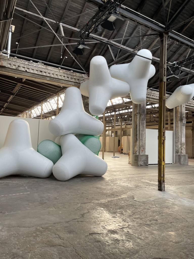 ROOM FOR A VIEW, 2021, drill, chisel and hammer, inflatable, exhibited at LOBE Block, Berlin